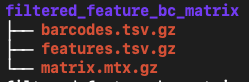 barcodes.tsv.gz: The cell barcodes detected; these correspond to the columns of the count matrix